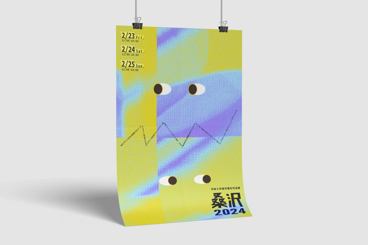 The graduation exhibition is a time for students to reflect on their thoughts and emotions as they prepare to leave school. It is an opportunity for them to explore themselves and express their findings. This poster uses high-contrast colors to represent the range of emotions that students feel as they approach graduation. The heart rate monitor and radio wave motifs symbolize the bold ideas that students are developing in their minds. The poster is a personification of these ideas, bringing them to life in a visually striking way.